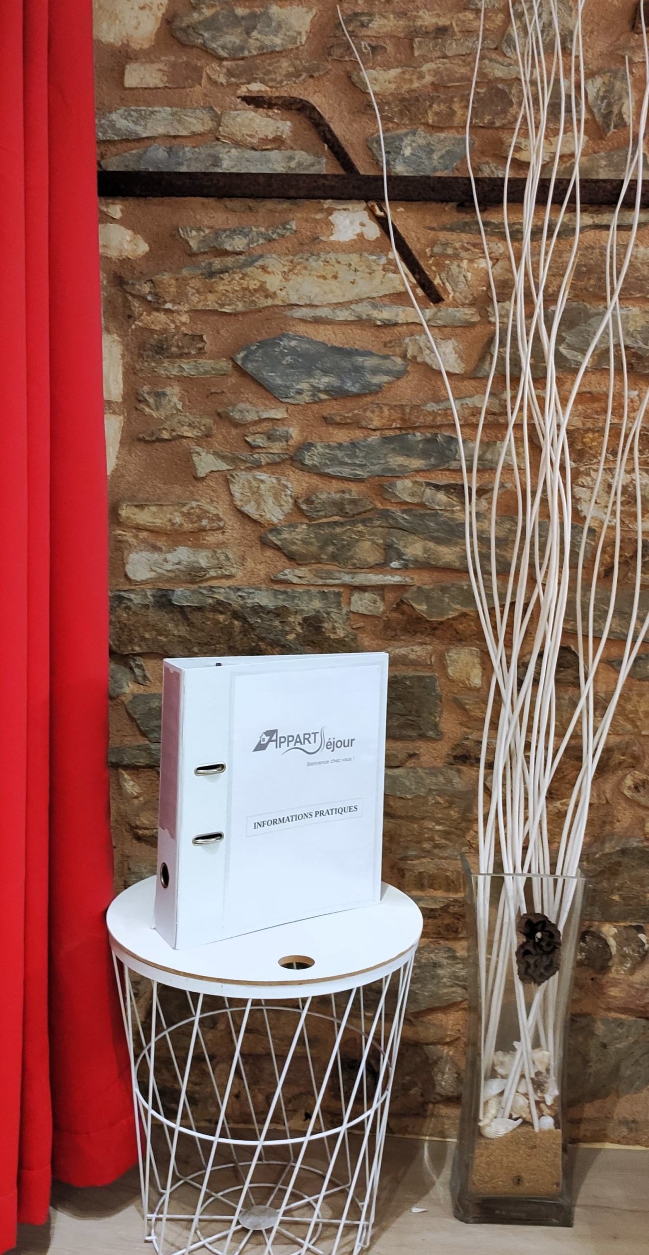 Un classeur vous est mis à disposition dans lequel vous pourrez y trouver toutes les informations pratiques relatives à l’appartement.